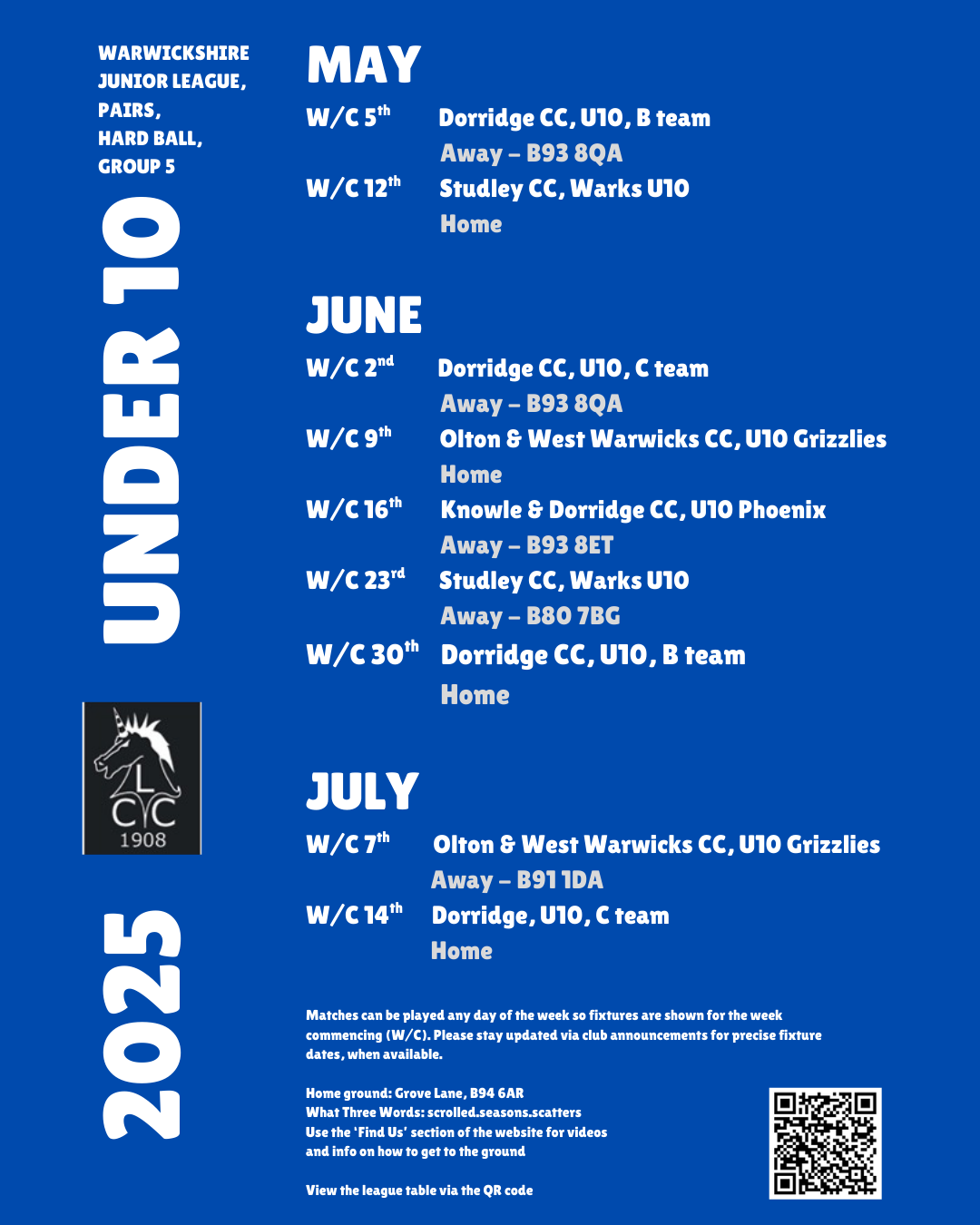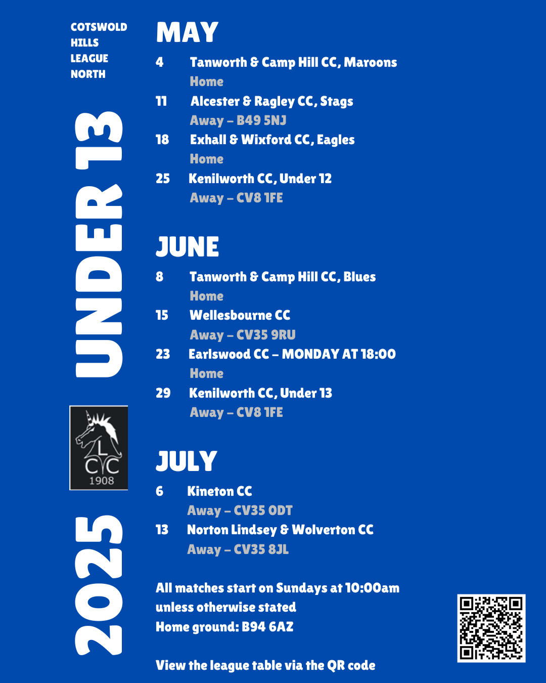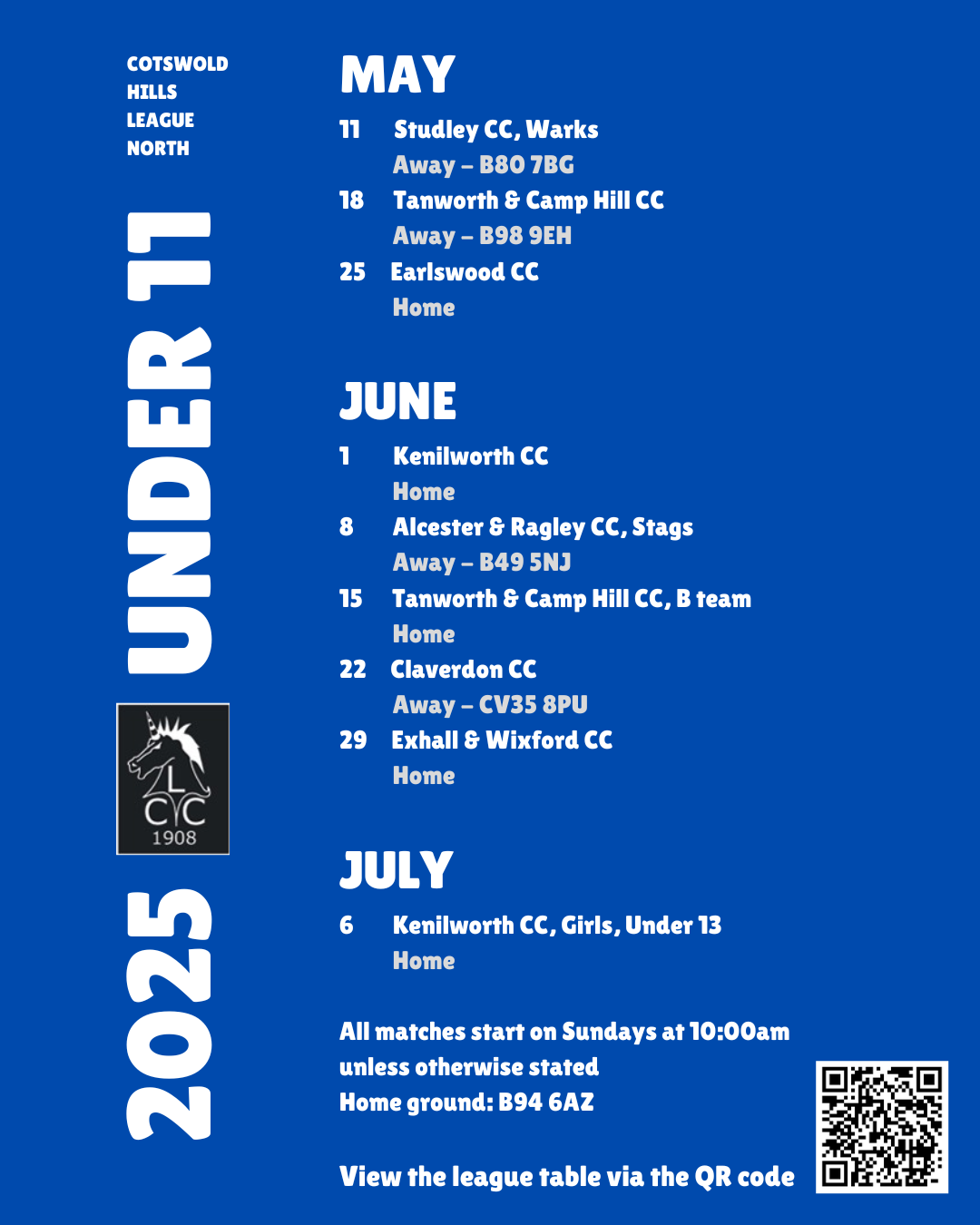 Junior coaching takes place every Monday evening, starting Monday, 12th May 2025 from 18:30 to 19:30.U11 & U13 play on Sunday mornings at 10:30.