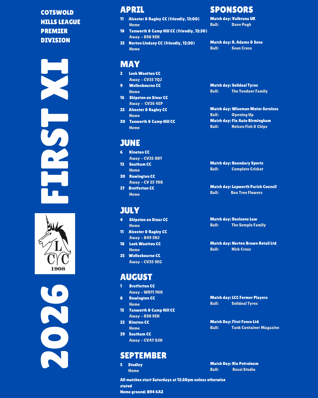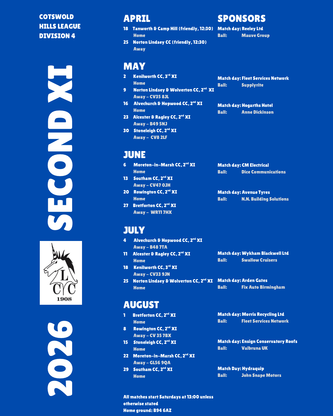 The 2nd XI play in Division 4 of the Cotswold Hills League. Also joining the league in 2012, the 2nd XI was focused on providing opportunities for all members to play a competitive game each week.