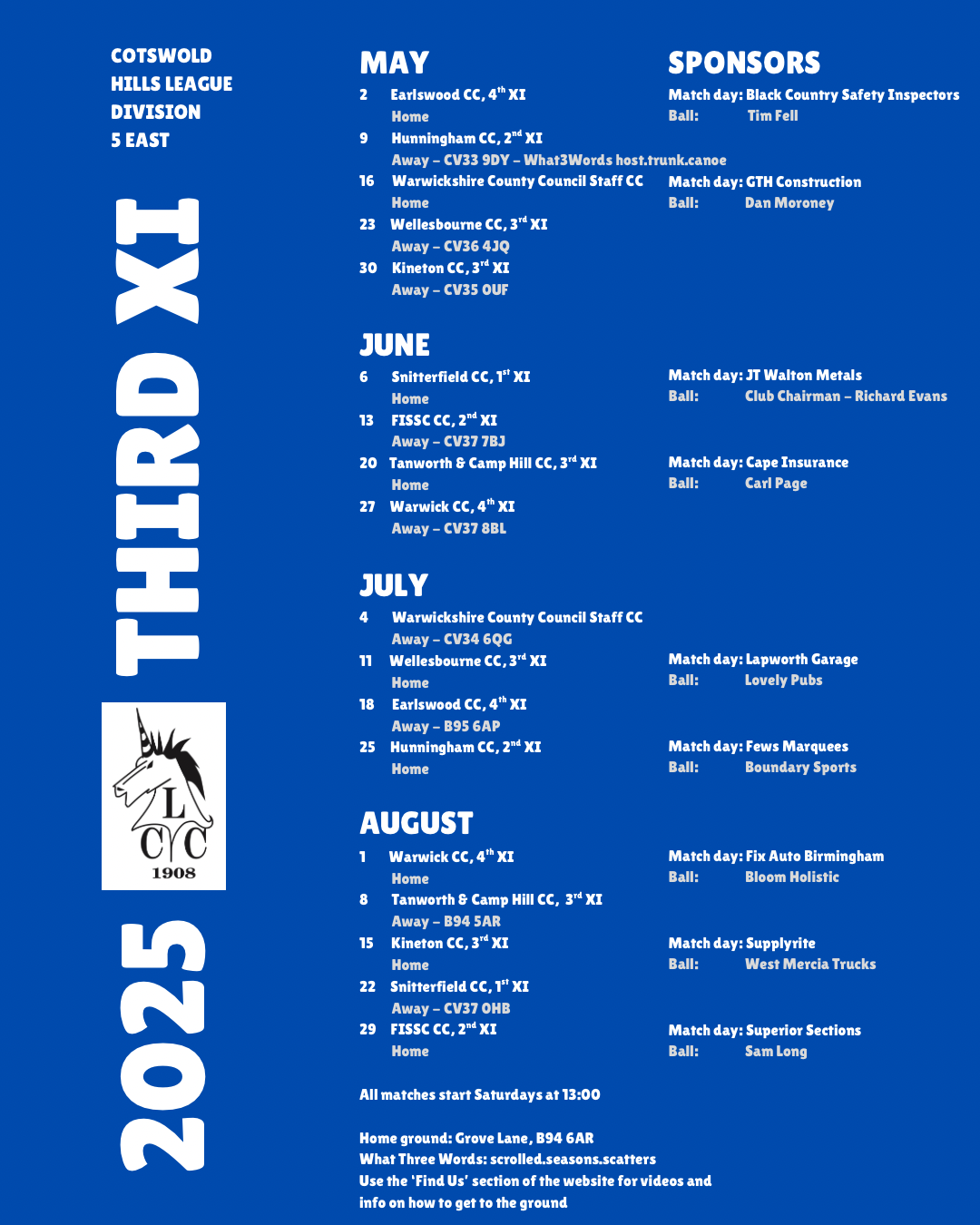 The 3rd XI play in Division 5 East of the Cotswold Hills League. The team was formed in 2019 after a number of years of growth with new players joining Lapworth.