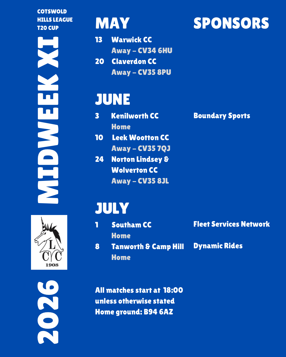 The emphasis is to promote youth cricketers in the area thus giving them more cricket to encourage them to stay in the game and some exposure to adult cricket outside of the county and district youth competitions.